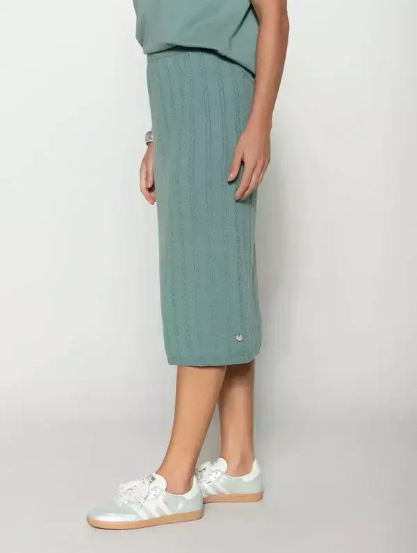 Looks elegantes pedem a saia em algodão de modelagem reta e comprimento midi da Biamar. Com tecimento em tranças na vertical e fenda na parte de trás, exibe visual delicado e refinado para as suas produções.